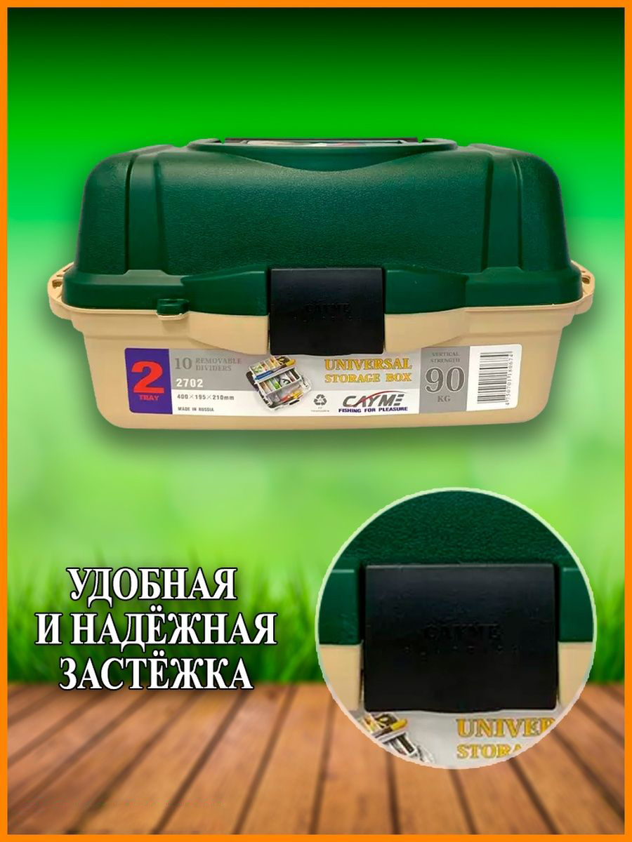 В поддон ящика умещаются более габаритные приманки или же инструменты, которые могут потребоваться во время рыбалки. Ящик для рыбалки оборудован простым и удобным запором сбоку, крепко закрывающимся и сохраняющим содержимое рыболовного бокса.